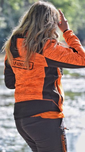 Couleur orange vif et étiquette brodée des différentes TEAM sur la manche.